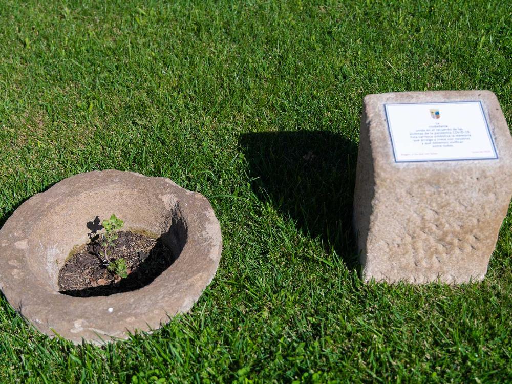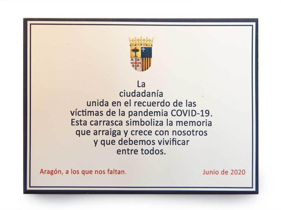 El acto llevó el nombre de “A los que nos faltan” y comenzó con la plantación de la carrasca, símbolo de la identidad de Aragón, una especie abundante en todos los territorios de España con el que se pretende manifestar la solidaridad, afecto, hermandad y causa común. A continuación se instaló una placa de cerámica elaborada en el Taller-Escuela de Muel y finalmente se procedió a la lectura de un texto de Manuel Vilas, premio de las Letras Aragonesas.